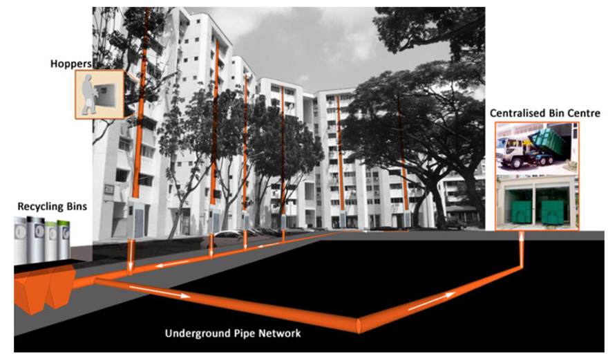 HDB Yishun Neighbourhood 4 implemented an advanced district Pneumatic Waste Conveyance System (PWCS) to modernize its waste management.