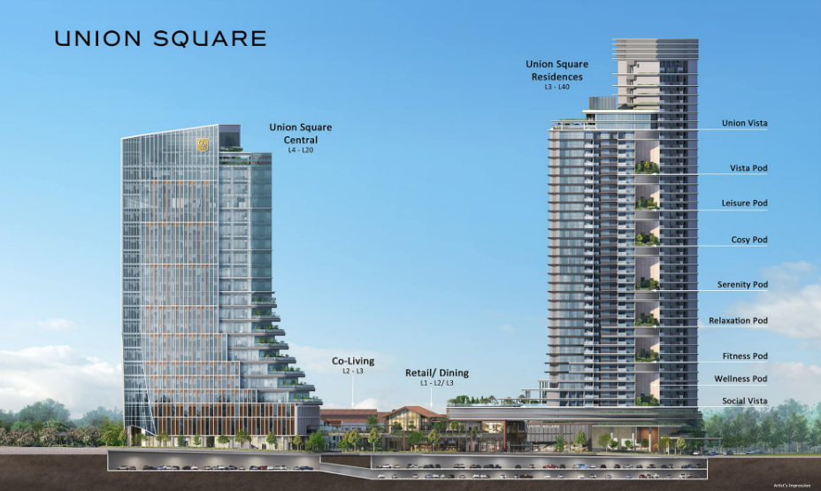 Union Square is a planned mixed-use development project, connecting Clarke Quay riverfront with the CBD fringe, with a completion date targeted for 2028.